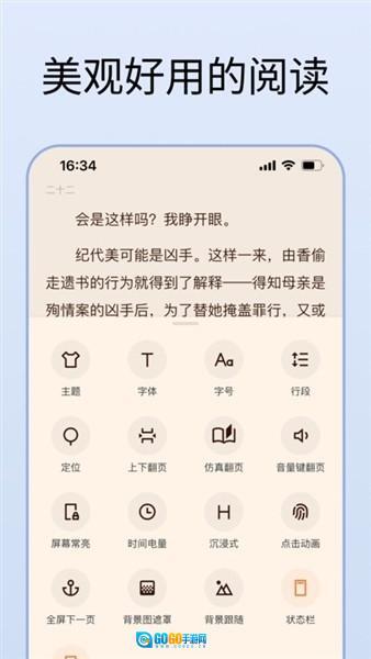 支持主题与自定义设置,包括多种字体、字号、背景颜色等,打造专属阅读界面