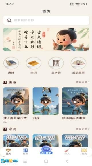 3、进入主界面后,这里提供唐诗、宋词、三字经等学习内容,能让您轻松开启学习之旅。