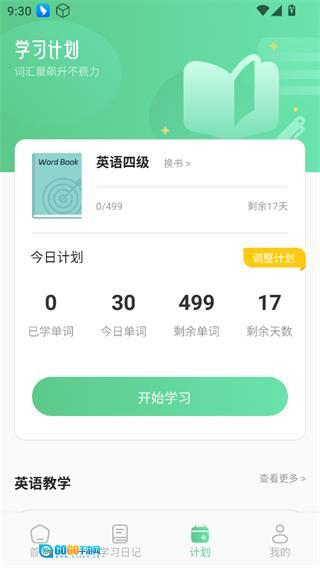3、在计划页面可以自由选择词书进行学习,也可以制定当前的学习计划。