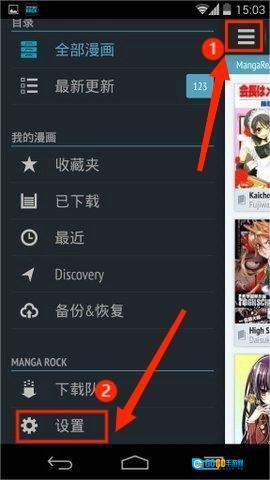 1、打开Bato.to软件,点击左上角三图标,然后点击最下方的设置按钮