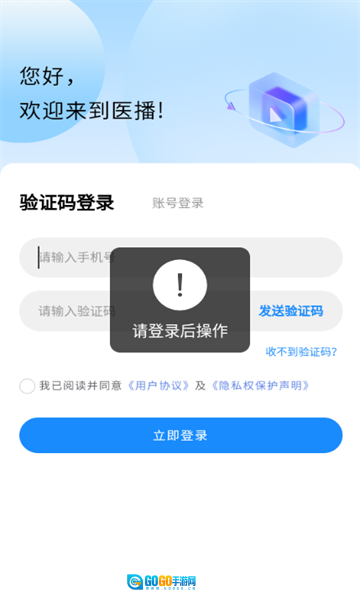 在弹出的界面中选择手机号登录选项,随后获取验证码,输入验证码后点击登录按钮,即可进入软件。