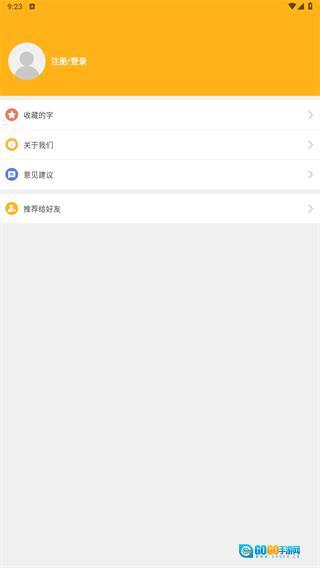 4、点击左上角头像还可以查看你收藏的字,也可以进行意见反馈,将软件分享给好友一起使用。