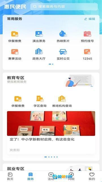 2、点击“服务”板块,您将进入便民服务专区,涵盖了各种实用服务功能,方便您随时获取与生活相关的便民信息。