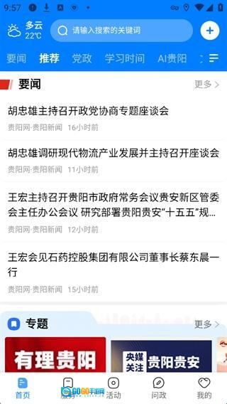 1、打开贵阳新闻App,在首页可以浏览关于贵州贵阳市的各种新闻资讯,也可以在搜索栏搜索你感兴趣的内容。