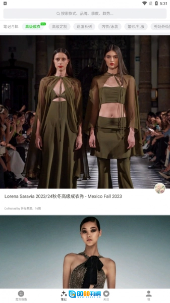 2、而在笔记功能栏中,软件为用户提供有关高级成衣、高级定制、巡游系列等笔记;