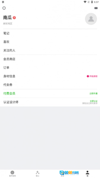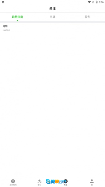 3、登录以后,用户可以在趋势指南、品牌与设计师、款型下面点上小爱心,就可以添加关注,如果有新的内容更新,就可以在【关注】功能栏这里看到;