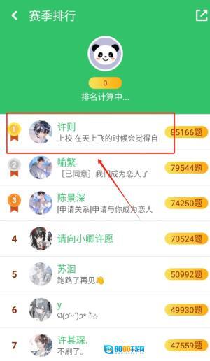 3、完成答题后,可以实时查看自己的排名情况,以了解在社区中的表现及进步。