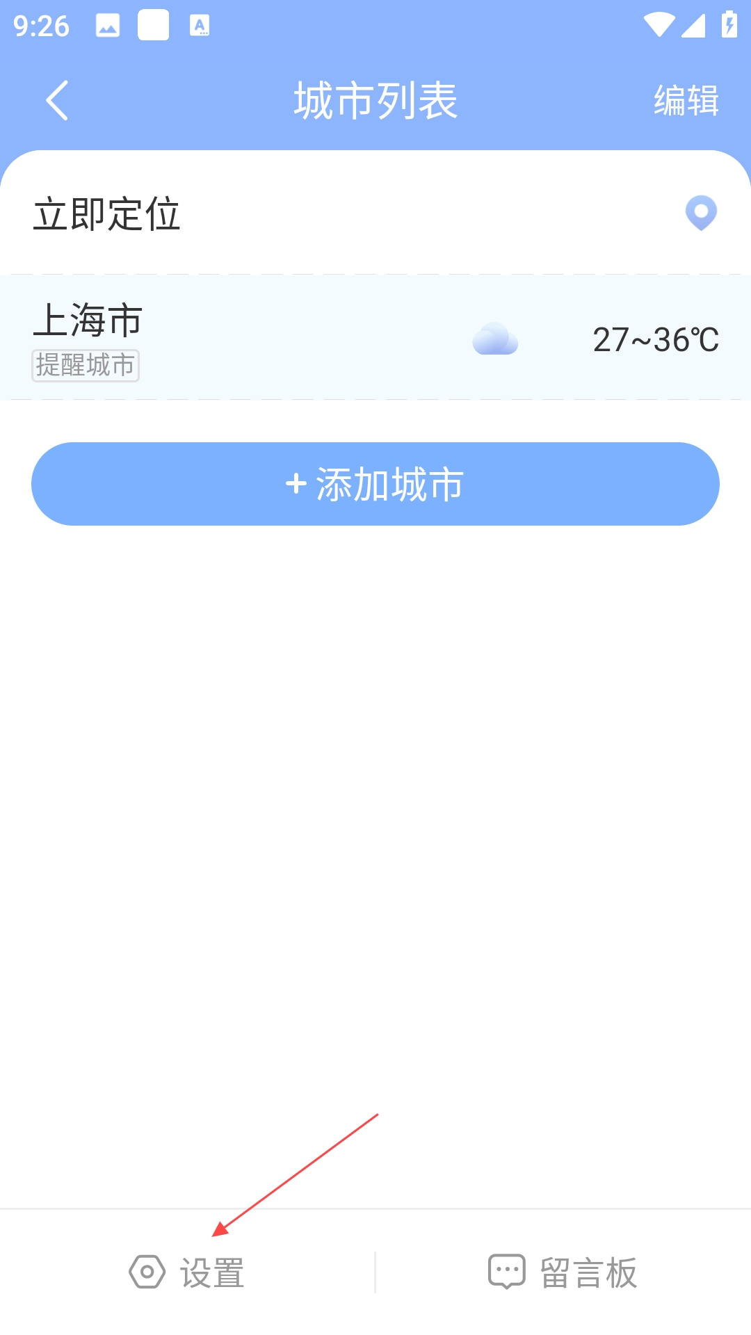 点击左上角图标,设置提醒,获取天气变化通知。