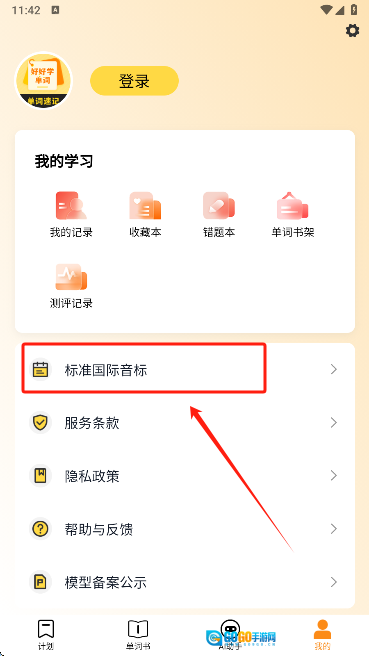 2、接着在页面找到【标准国际音标】并点击