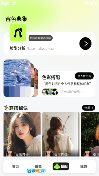 在搭配页面里,你能找到脸型分析、色彩搭配以及穿搭秘诀等功能。