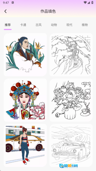 作品的填色页面里有不少不同的模板,大家可以随时自由填充颜色。