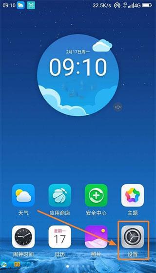 在手机桌面上,点击设置进入设置界面;
