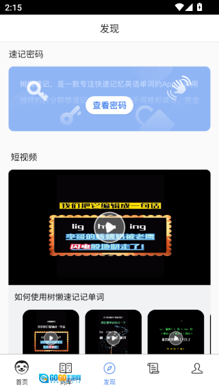 发现界面设有速记密码,直接点击即可查看,便于快速获取高效记忆的内容。