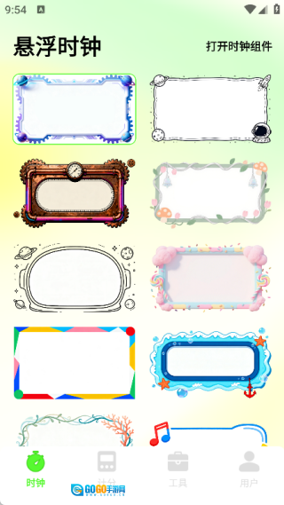时钟页面里有各种各样不同类型的边框,用户能够了解到各类精彩的悬浮框。