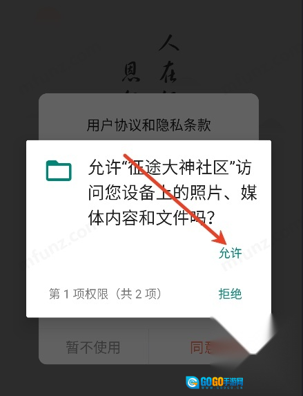 打开征途大神社区点击允许进入下一步