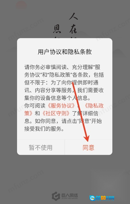 阅读协议并点击同意