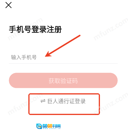 输入手机好和验证码登录,或使用巨人通行证登录