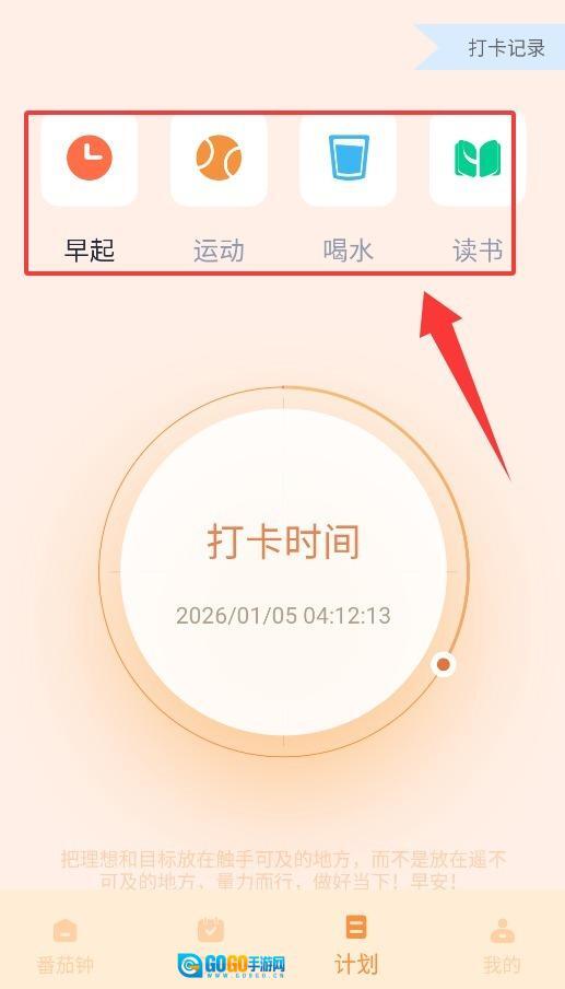 3、在打卡界面的右下角,可通过点击加号按钮来添加待办事项或记录习惯。