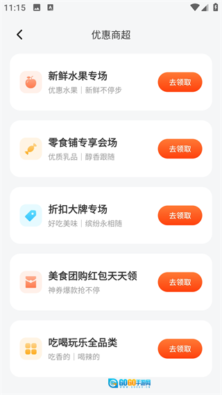 优惠券类型丰富,包含了水果、零食等各个分类;
