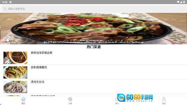 首页会及时更新热门菜谱资讯,同时也提供搜索功能供用户使用。