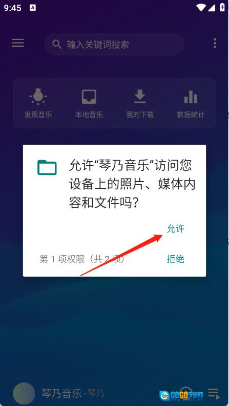 1.打开琴乃音乐App,开启相关的权限