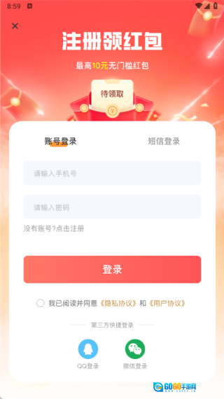 在登录页面,你既可以通过账号登录,也能选择手机短信登录的方式。