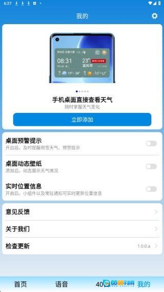 在我的页面,支持预警、天气壁纸等,一键设置。