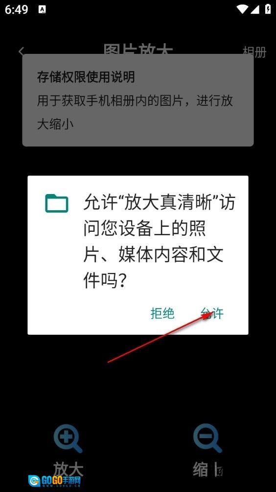 3、然后选择允许软件获取手机权限
