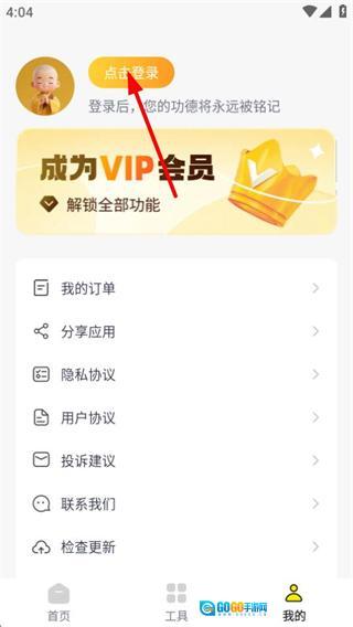 1、进入功德页面后,点击右下角的“我的”选项,即可进入个人页面。