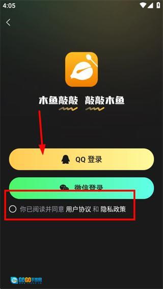 3、进入登录选择页面后,先勾选相关协议,接着选择QQ选项,就能完成登录操作。