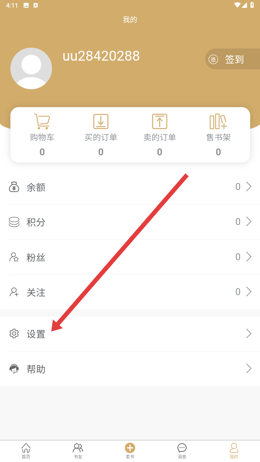 2、进入【我的】页面后,找到并点击【设置】选项,即可进入设置页面啦。