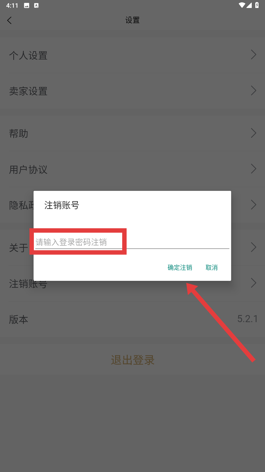 4、点击【注销账号】后,在弹出的窗口中输入登录密码,接着点击【确定注销】,即可完成账号注销操作。