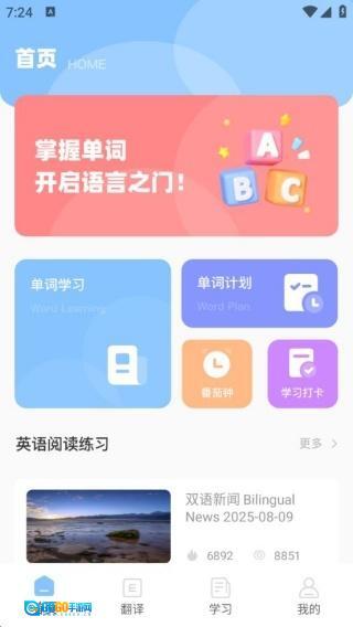 1、首页提供各类英语学习内容,能帮助用户积累更多单词。