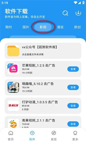 2、“影视”专区提供的是各类免费追剧软件,这些软件都与观看视频、动漫以及短剧相关。