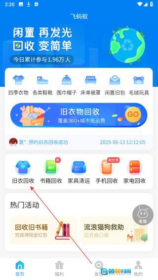 飞蚂蚁旧衣服回收软件怎么用
