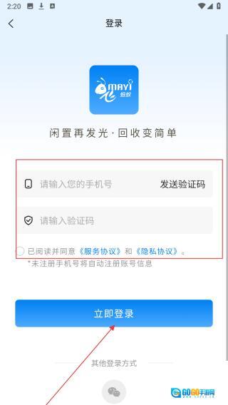 3、填手机号、验证码,点【立即登录】完成登录即可继续流程。