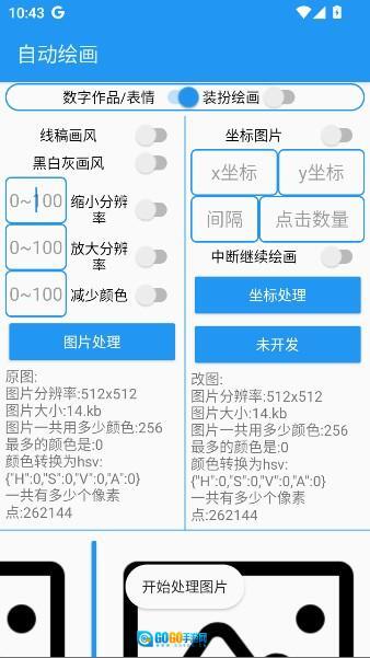 5、改了数值的需要将按钮打开,然后点图片处理。