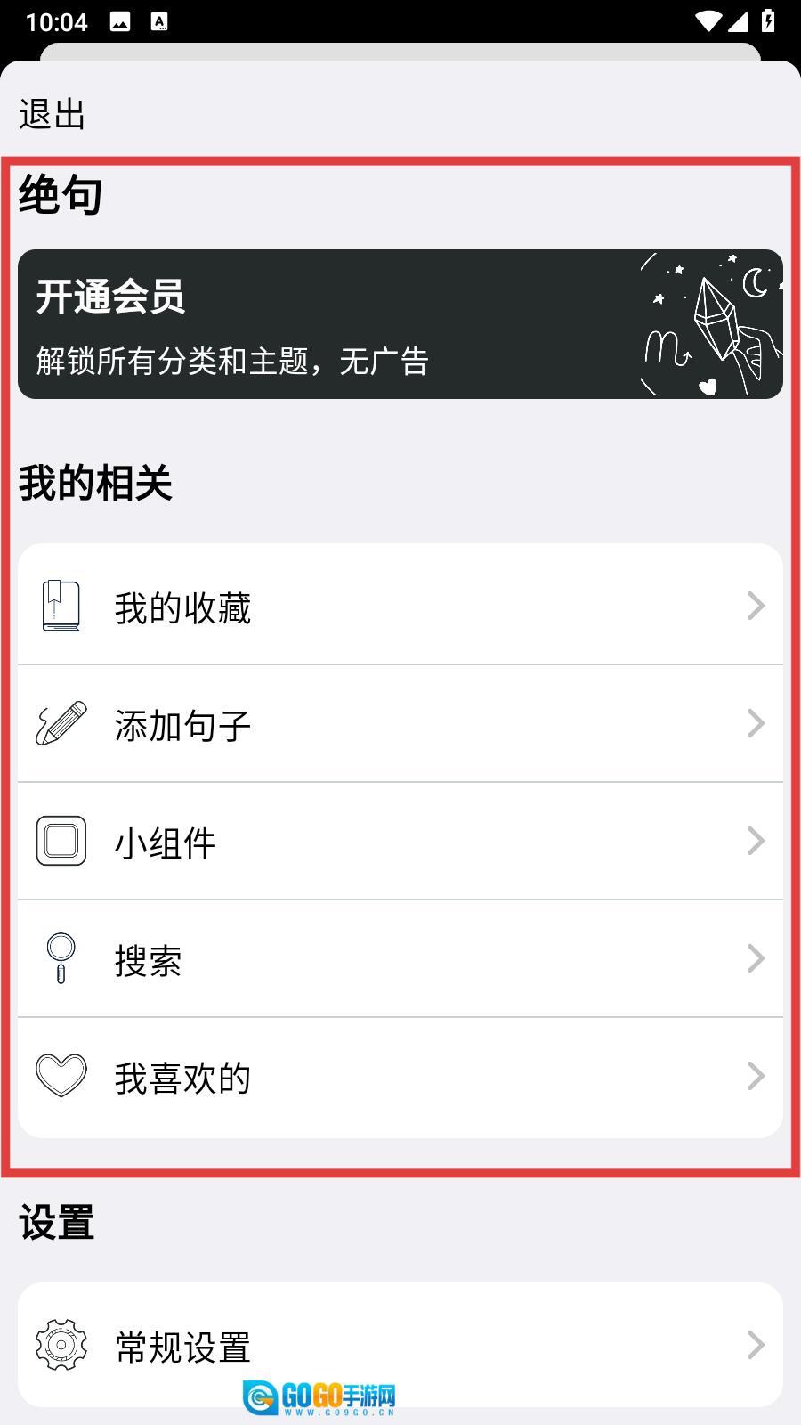 3、在个人页面,您可以通过【开通会员】来解锁所有分类与主题,享受体验;同时还能使用【我的收藏】【添加句子】等功能,对个人内容进行管理。