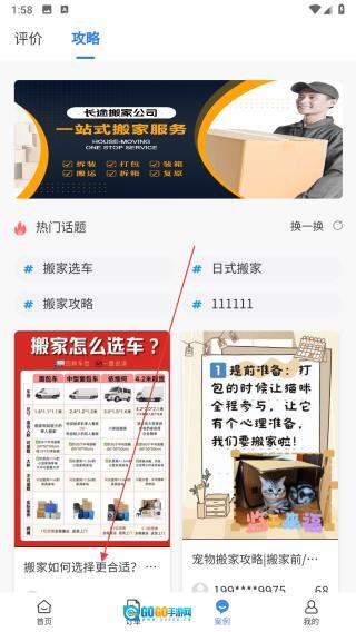 3、进入攻略界面后,点击你感兴趣的攻略内容(例如【搬家怎么选车】)。