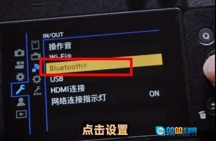 4、然后拿出你的相机,点击相机的设置按钮,在菜单里找到bluetooth;
