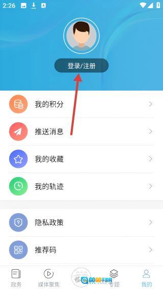 2、个人中心点击【登录/注册】按钮。