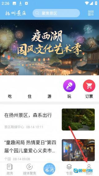 1、扬州景区首页点击底部【我的】进入个人中心。