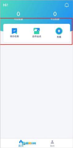 1、打开溪鸟PP,可以在首页查看待办事项、合作伙伴网站以及充值。