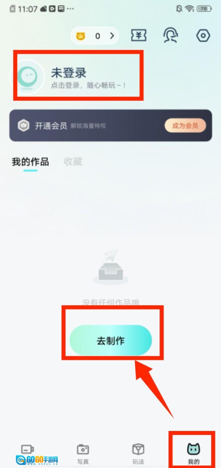 4、打开“我的”页面,点击“去制作”可启动创作流程,也能在此查看已完成的作品内容。