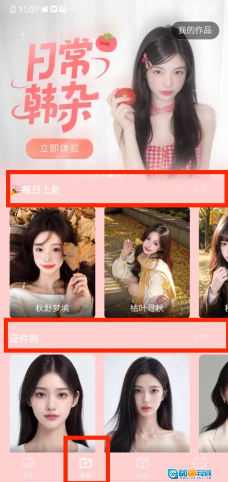 2、切换到“写真”页面,能查看每日上新的风格模板,也可在证件照分类里选择对应样式。