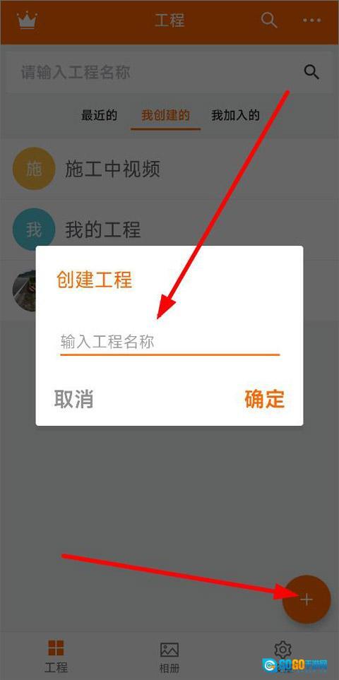 1、打开工程相机最新版,进入主页面,点击右侧“+”创建工程并填写工程项目名称;