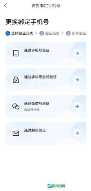 选择验证方式来更换绑定手机号。