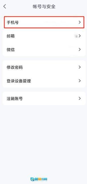 在【账号与安全】页面,选择【手机号】。