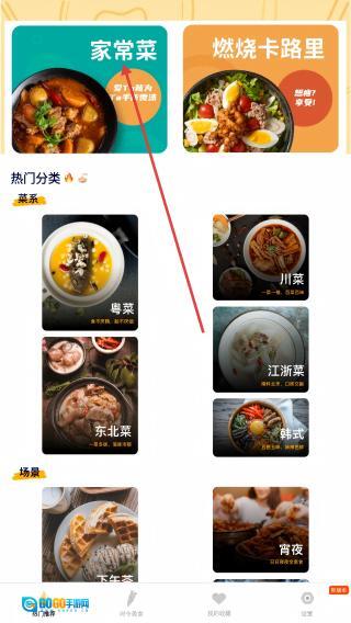 1、点击页面上方【家常菜】分类进入菜品列表。