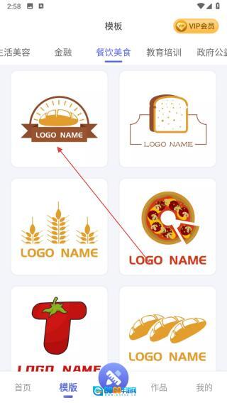 2、模版分类页选目标分类(如餐饮美食),进入对应模版列表页。